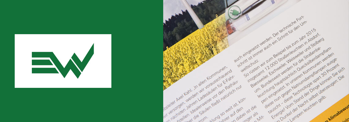 Für unseren Kunden EWV aus Stolberg sind wir seit vielen Jahren tätig, insbesondere im Bereich Textarbeiten (PR, Image, interne Kommunikation).