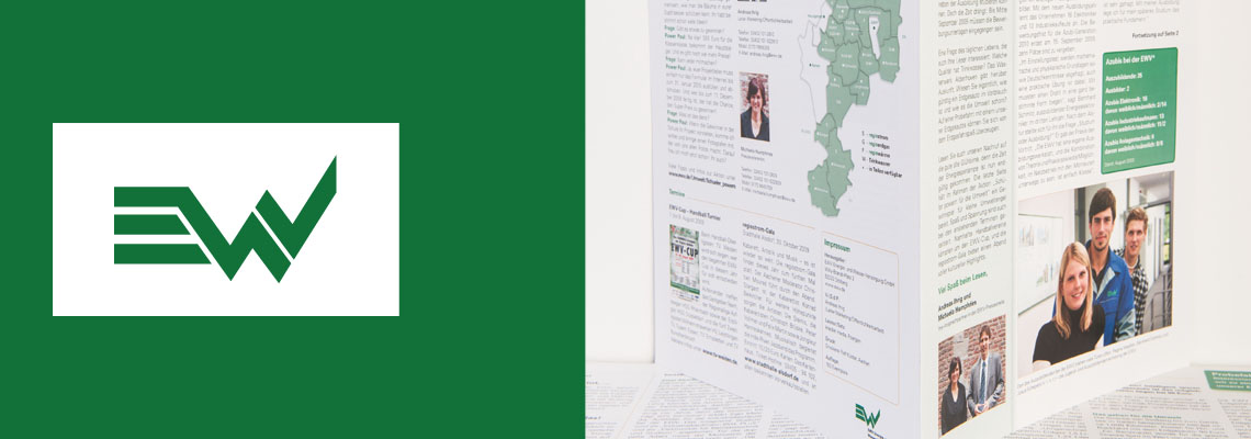 Ob Texte/Layout für Newsletter, PR-Zwecke, oder die EWV-Imagebroschüre, kreidler media wurde für eine breite Produkt-Range beauftragt.